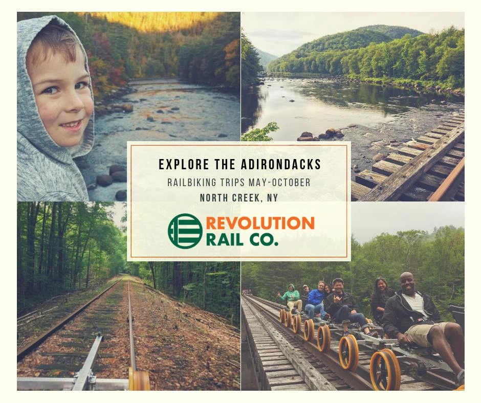 Railbiking with Revolution Rail Co. is a fun excursion activity that allows riders to ride the railroad tracks under their own power and explore a section of the Adirondack railroad that never saw passenger traffic. Reservations are STRONGLY...