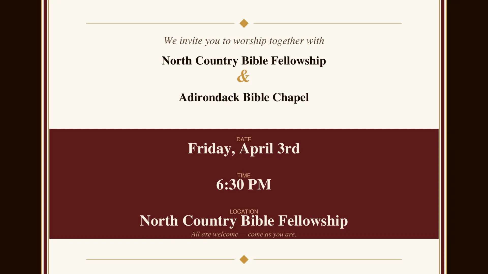All are welcome — come as you are.