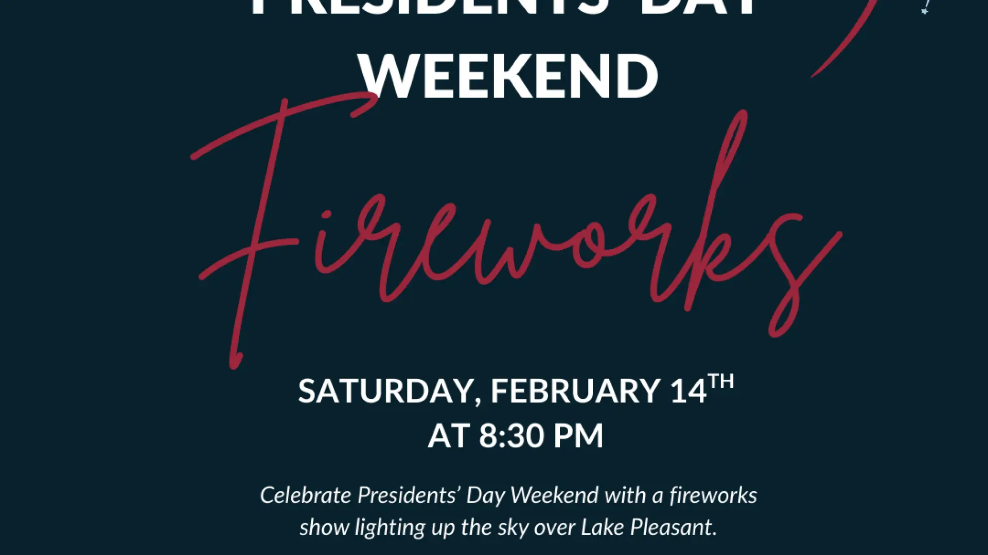 Presidents Day Weekend Fireworks at Camp of the Woods Saturday, February 14th | 8:30 PM Celebrate Presidents' Day weekend with a spectacular fireworks show lighting up the sky over Lake Pleasant! Enjoy the view from Speculator Village Beach or the ...