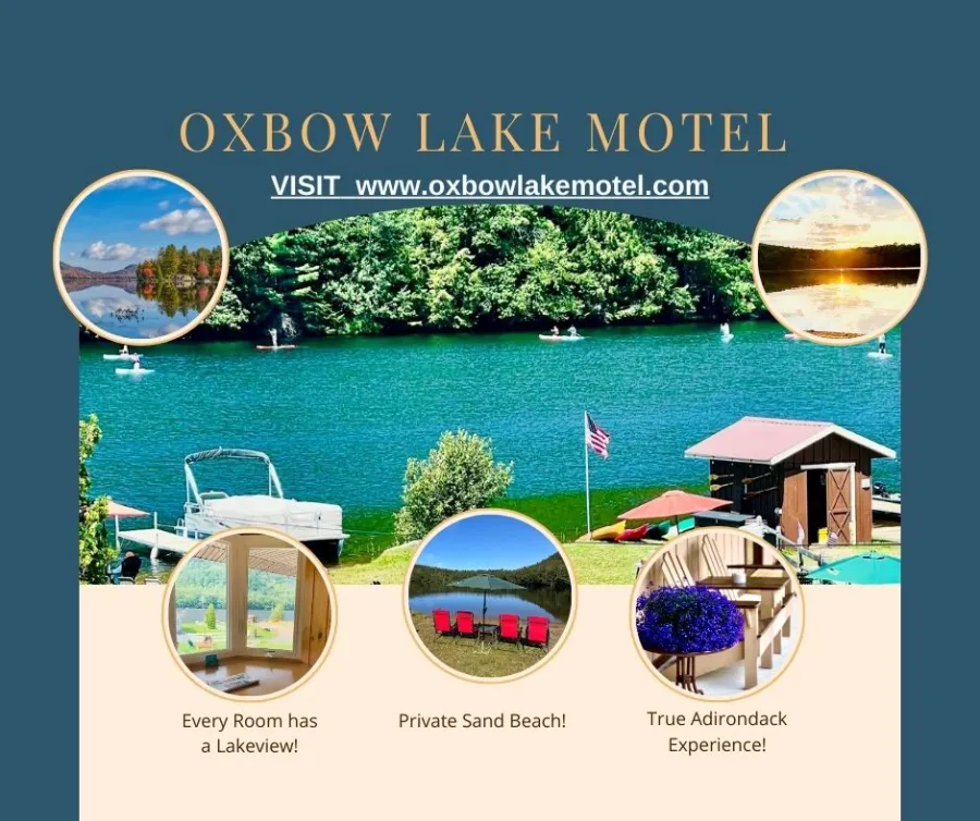 10 room motel, all with Lake view, 2 full size beds per room. 5 rooms have efficiency units. The Oxbow Lake Motel is situated along NYS Route 8 in the heart of the Adirondacks. With two cabins, four efficiencies, and six motel rooms all on the lake...
